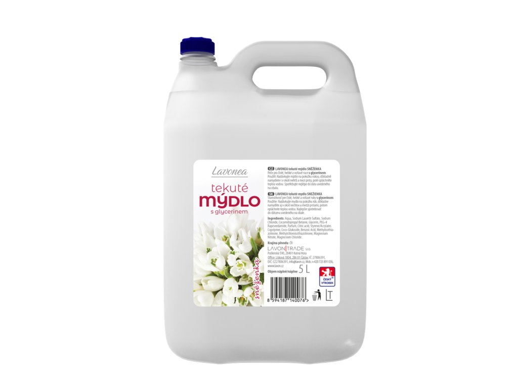 LAVONEA tekuté mýdlo Sněženka je kvalitní mýdlo s neutrálním pH a glycerinem pro hebké, čisté a voňavé ruce. Tekuté mýdlo zajistí Vašim rukám a pokožce dokonalé mytí a dokonalou hygienu. Mytí rukou patří k základním hygienickým návykům. Tekuté mýdlo Lavon je vhodné pro každodenní použití. Mýdlo bohatě pění a spolehlivě odstraní z rukou a pokožky špínu a nečistoty. Lavon tekuté mýdlo nedráždí Vaši pokožku a zanechá ji jemnou a hebkou.